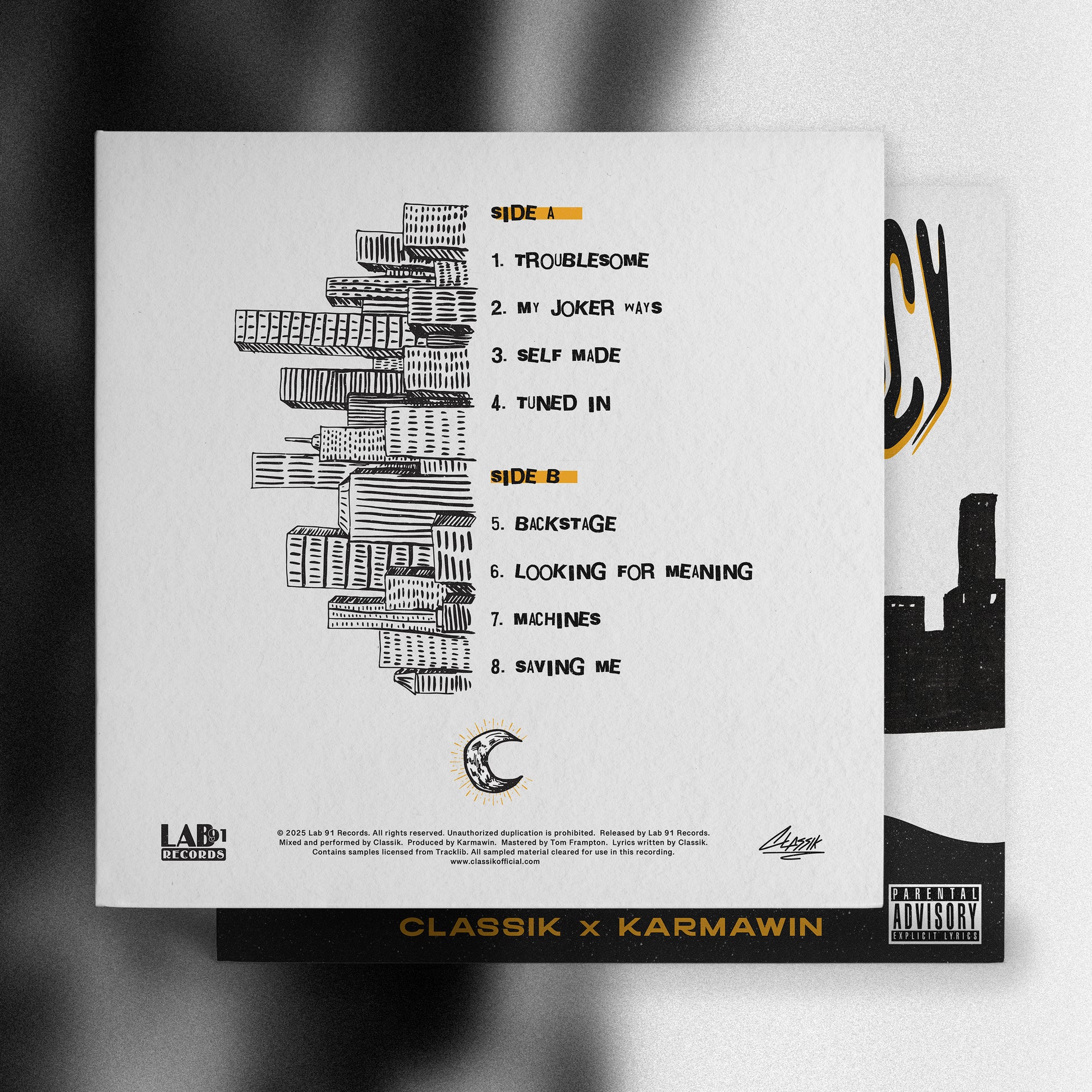 A Higher Frequency is the new 8-track album from rapper Classik and producer Karmawin - pressed on 12″ vinyl at 45RPM for higher-fidelity playback.